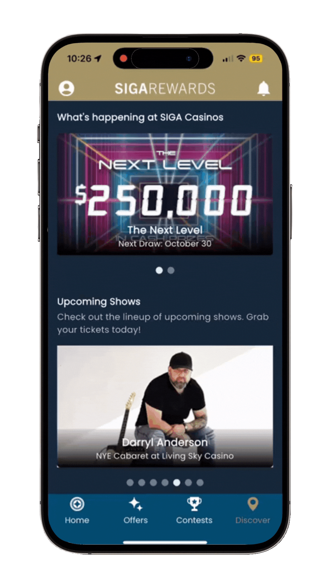 Can I buy tickets to events through the app? No, but you can use the Discovery tab to visit casino websites, then navigate to the Entertainment section to buy tickets via Showpass.